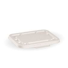 White Sugarcane Biocane Lid to suit 500 & 600ml Rectangle takeaway containers. These Sugarcane lids are made from rapidly renewable sugarcane pulp. The sugarcane containers are sturdy and versatile, they can handle a wide variety of hot and cold foods, including soups and curries grease and water resistant.