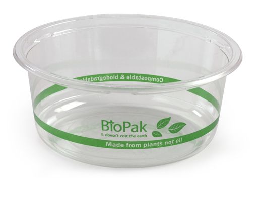 360ml BioPak Clear Deli Bowls look and perform like any other plastic bowls, but these are made from a plant based bioplastic made from plants not oil. They perform excellently when serving cold meals - perfect for a fruit salad or yogurt with muesli! With matching Bio Degradable Clear Lid to suit to showcase your products (BP-BWL-LGE).