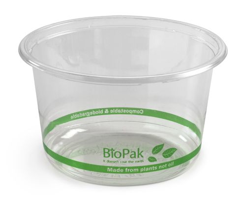 500ml BioPak Clear Deli Bowls look and perform like any other plastic bowls, but these are made from a plant based bioplastic made from plants not oil. They perform excellently when serving cold meals - perfect for a fruit salad or yogurt with muesli! With matching Bio Degradable Clear Lid to suit to showcase your products (BP-BWL-LGE).