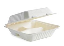 BioCane Pulp Clam Three Compartment are made from reclaimed and rapidly renewable sugarcane pulp. They come in range of sizes and compartments and can be used with a variety of hot and cold foods.