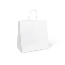 Upgrade your packaging solution with our Jumbo White Paper Bags with Twist Handles, combining durability, functionality, and sustainability to meet the diverse needs of your business while providing a stylish and convenient option for your customers.