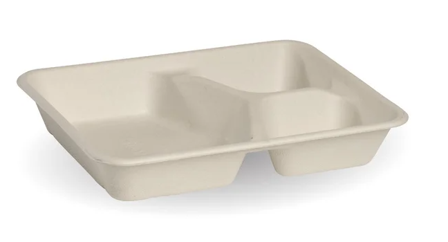 - Large 3 Compartment Natural Biocane Takeaway Base (Qty: 300) (232 x 232mm) (B-LB-3C-N-LARGE)