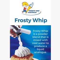 Introducing Frosty Whip in a convenient package of 9 x 1kg, a versatile powder blend designed to elevate your culinary creations. Frosty Whip is meticulously crafted to transform into a liquid analogue cream when mixed with cool water. This creamy blend can be easily whipped and used as a topping, garnish, or decoration, mirroring the texture and versatility of traditional dairy cream.