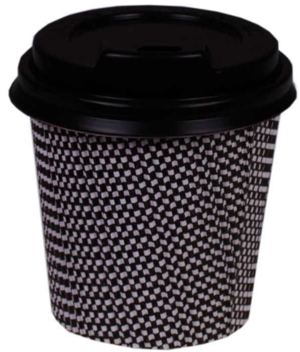 Distinctive Design: Our Black Checka Coffee Cups feature a striking black and white checkered pattern that is sure to catch the eye of your customers. This unique design sets you apart from the competition and adds a touch of elegance to your coffee service.