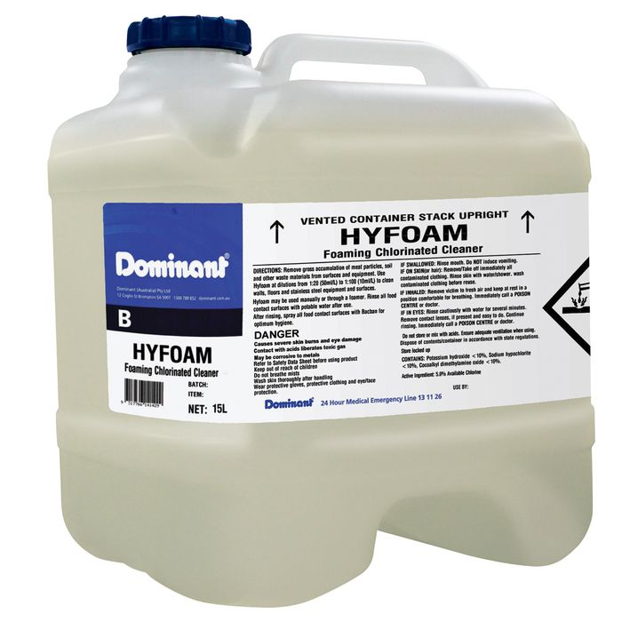 Potent Cleaning Power: Hyfoam is a robust and potent product, containing caustic potash and chlorine. This dynamic combination proves highly effective in tackling protein soils and removing stubborn residues from surfaces, leaving them clean and sanitized.