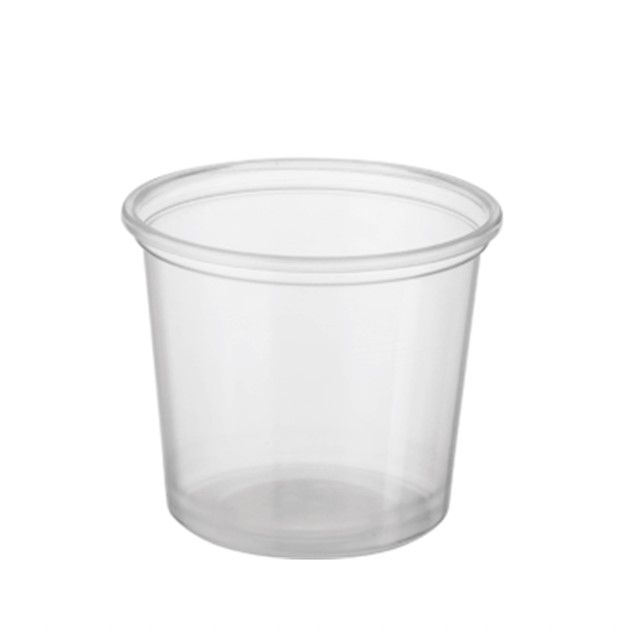 150 ml, 77 x 60 mm. Used in retail for fruit salad, yoghurt, or nuts or hot gravy.
