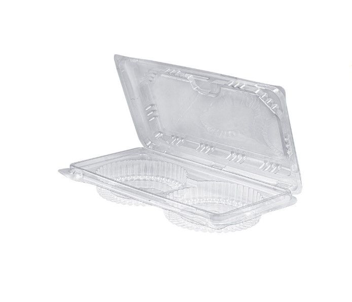 Hinged 2 donut rectangle clear container