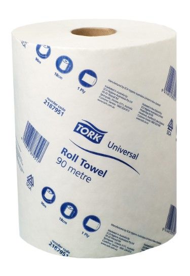 Tork Universal Roll Towel 90M /Single. Tork Roll Towel is a versatile and absorbent hand towel suitable for light general wiping and hand drying
